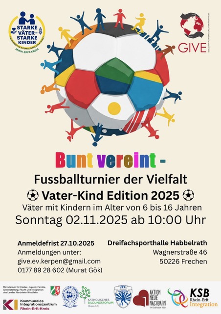 Am Sonntag, den 2. November 2025, findet in Frechen-Habbelrath im Rahmen des Vater-und-Kind-Turniers ein besonderes interreligiöses und interkulturelles Fußballspiel statt.
